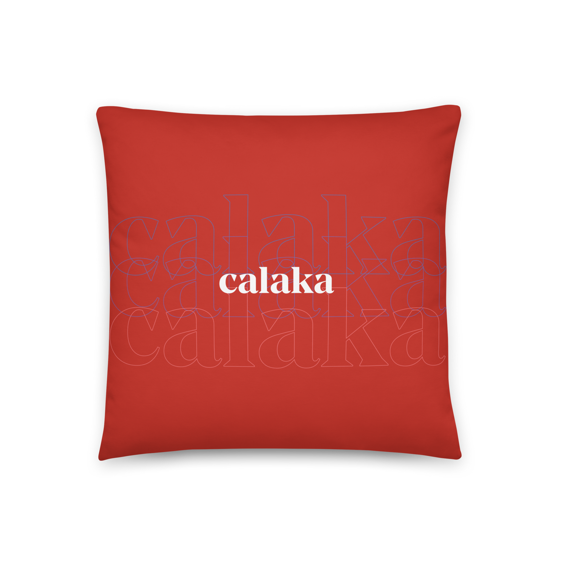 An accent with an all over print of multiple CALAKA stickers. It is made by cut & sew sublimation and is a machine-washable case with the shape-retaining insert.